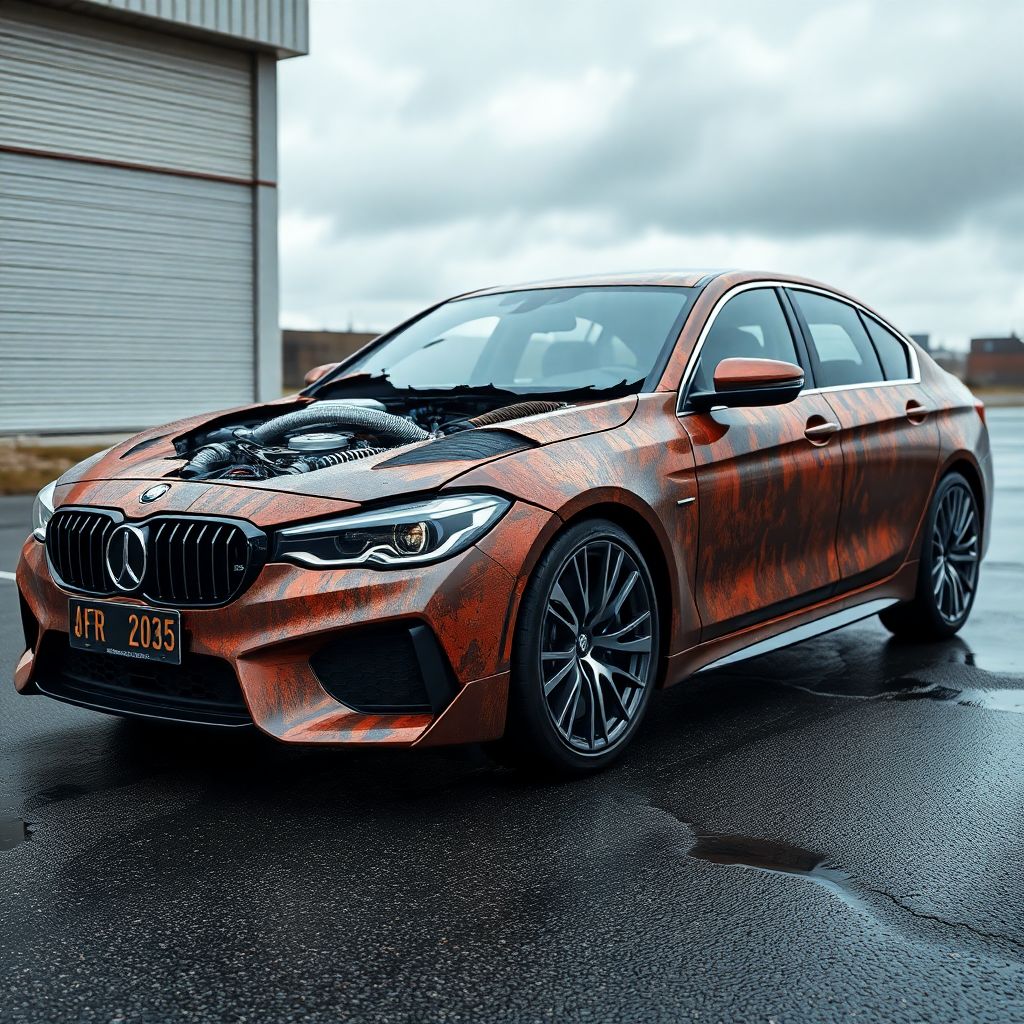 В 2025 году гиперреализм покраска кузова автомобиля заказать — это уже не только черепа, животные и киногерои. В моду вошли сложные визуальные иллюзии: кузов «под ржавый металл», но с такой глубиной коррозии, что хочется потрогать руками; имитация разорванных панелей, через которые виден «киберпанк‑механизм»; мокрые поверхности, будто машина только что выехала из дождя. Часто комбинируют аналоговый рисунок и цифровой концепт: сначала создают 3D‑сцену, а потом переносят её на кузов с сохранением перспективы и освещения реальной машины.