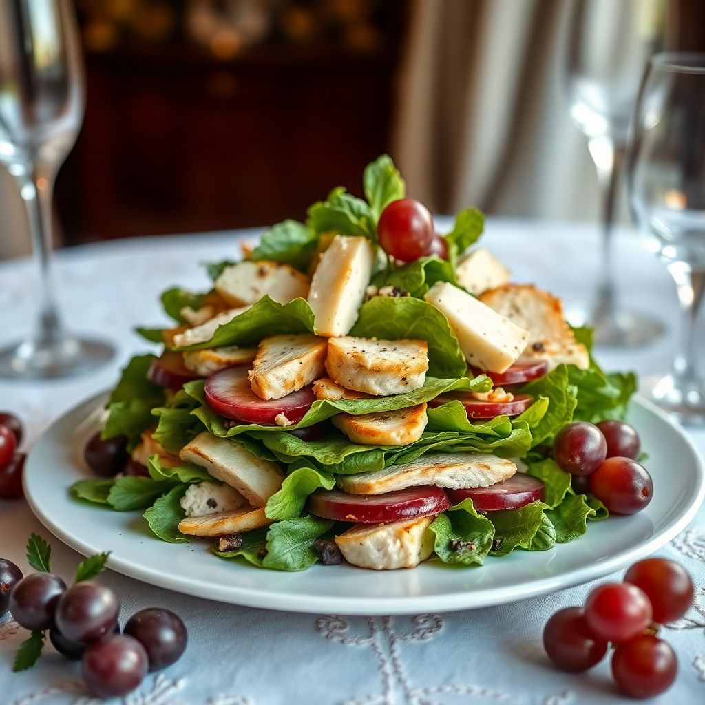 Тем, кто любит обновлять классику, стоит поэкспериментировать с деталями. Микрозелень или свежий шпинат добавят салату свежести и оттенят тяжесть соуса, бальзамическая глазурь подчеркнёт сладость винограда, а цедра лимона или апельсина в маринаде для курицы привнесёт лёгкую цитрусовую ноту. При этом суть остаётся прежней: салат «Тиффани» строится на контрасте нежности и хруста, сливочности и фруктовой свежести, превращая привычные продукты в эффектное праздничное блюдо.