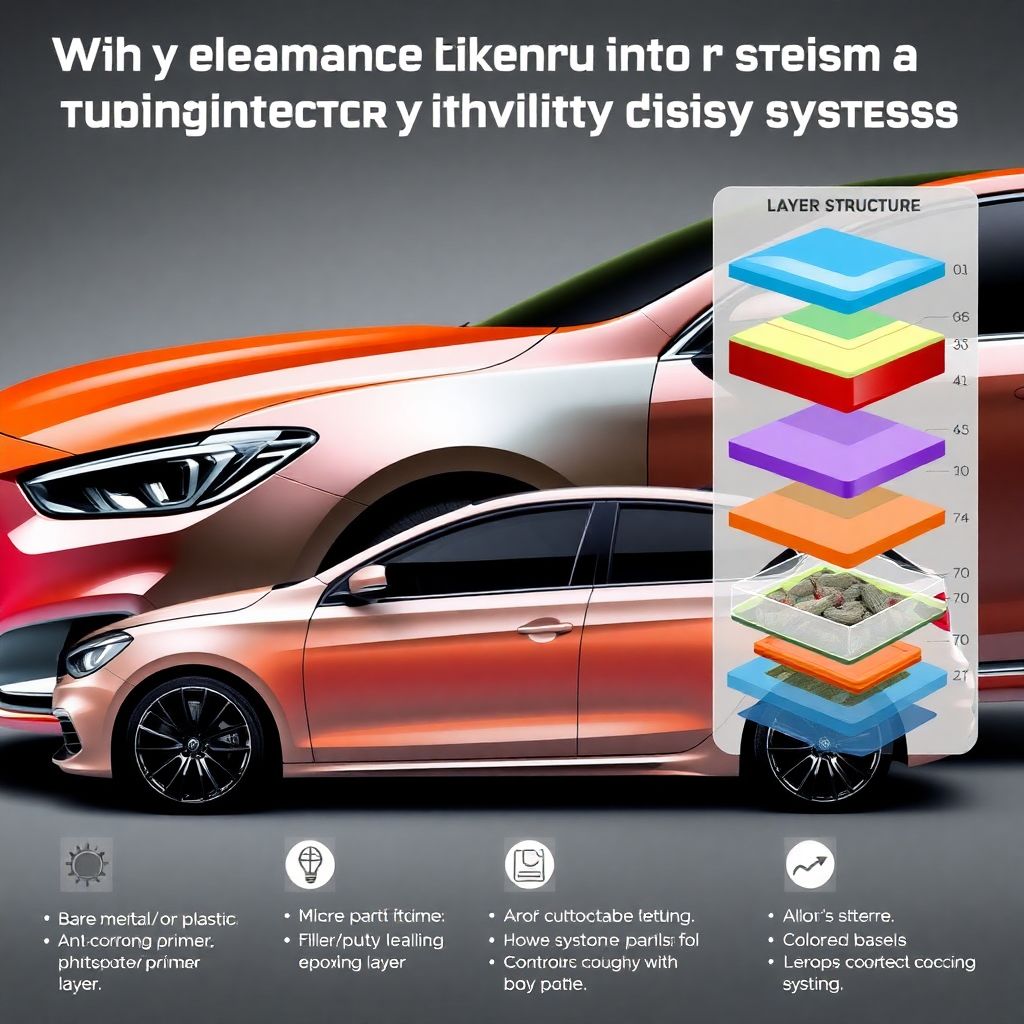 «Металл → адгезионный грунт → выравнивающий слой → цветной базовый слой → прозрачный лак или керамика/полиуретан».
